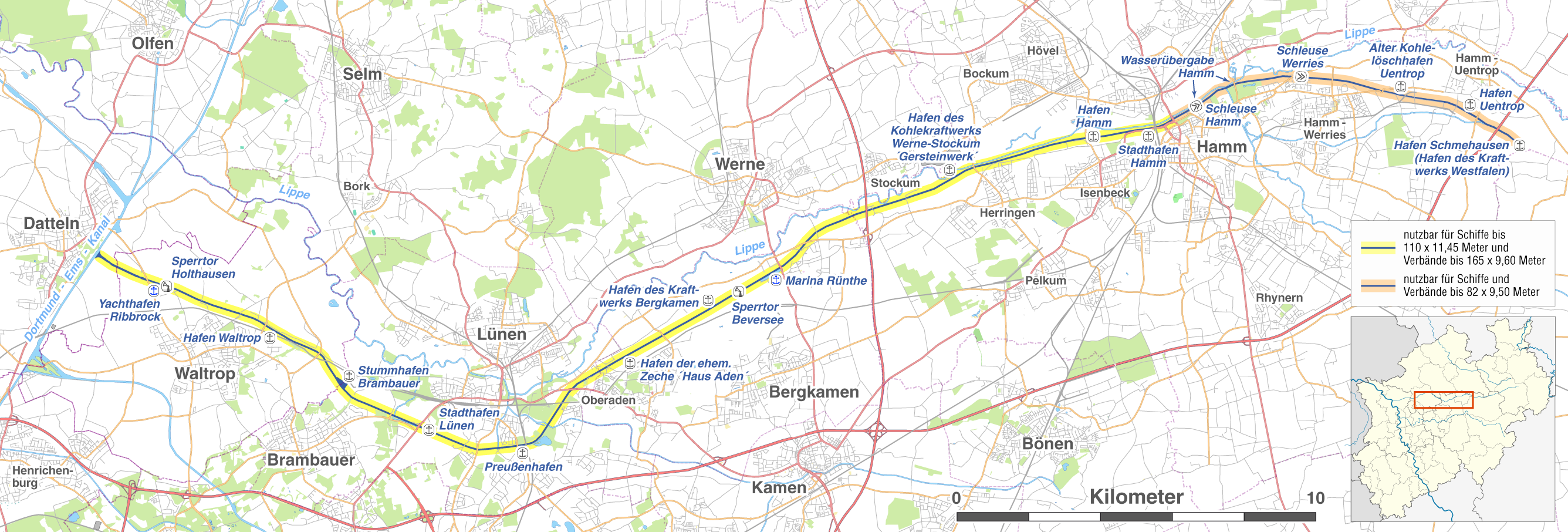 • Wichtige Häfen: Datteln, Lünen, Hamm